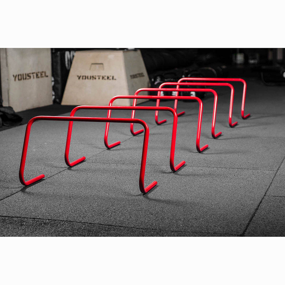Бег через цепочку выстроенных в ряд барьеров поможет значительно повысить ловкость ног, высоту колена при беге, скорость работы ног.